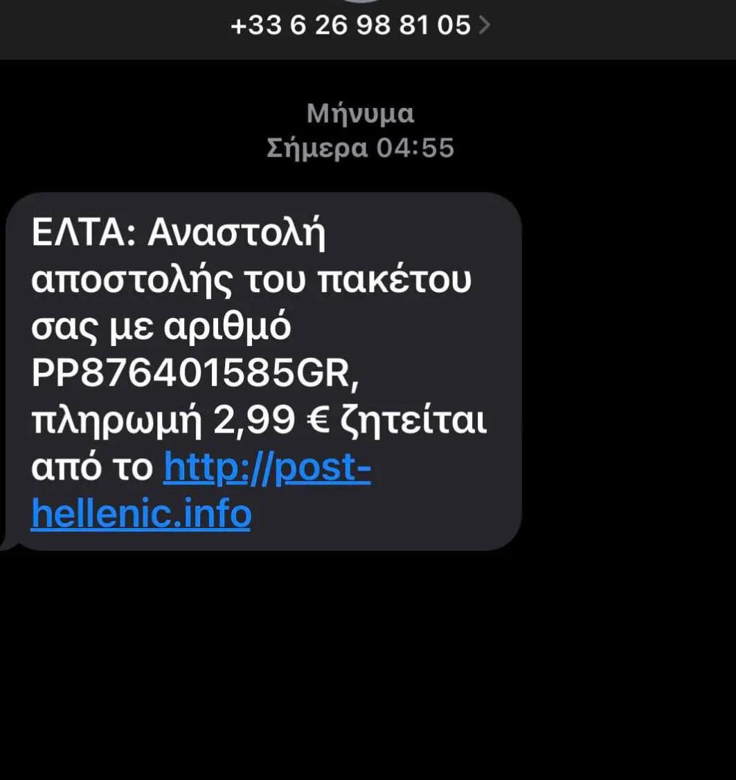 📌 Στο SMS περιλαμβάνεται ένας σύνδεσμος (link) που οδηγεί σε σελίδα-απομίμηση των ΕΛΤΑ.